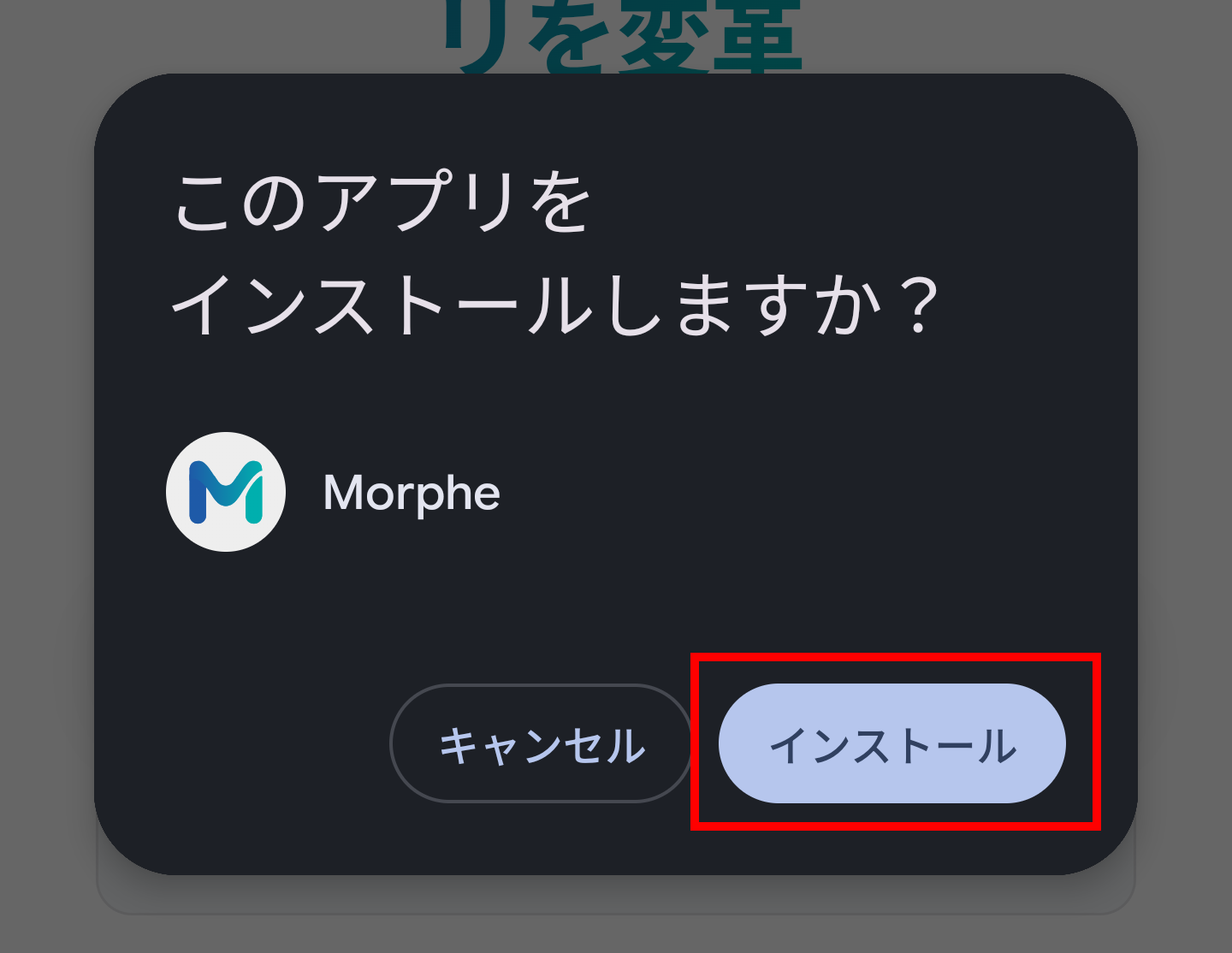 「インストール」をタップしてインストールしたら、Morpheを開いてください。