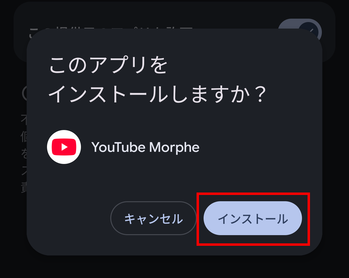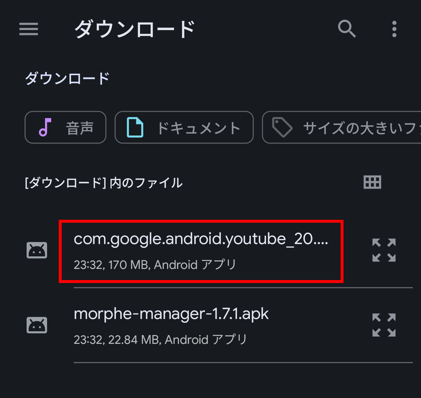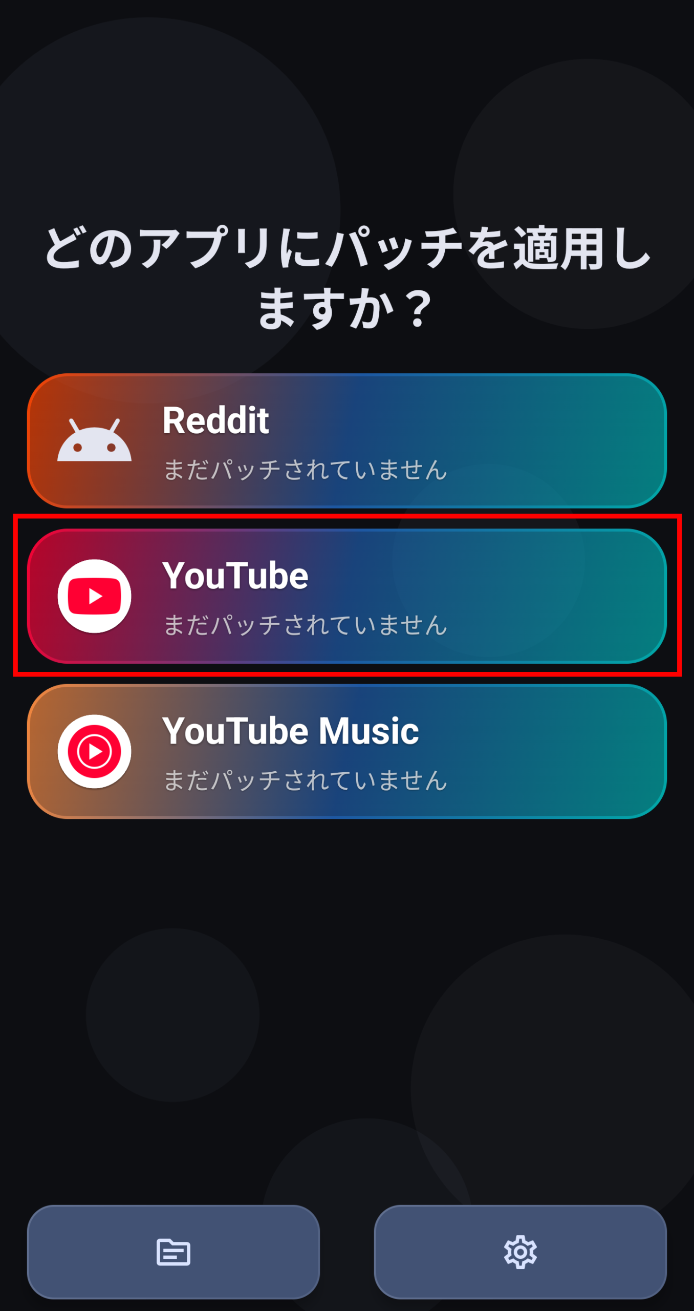 アプリにパッチを適用するアプリ「Morphe Manager(Morphe)」を使い、MorpheパッチをYouTubeアプリに適用するという手順です。順番に解説します。