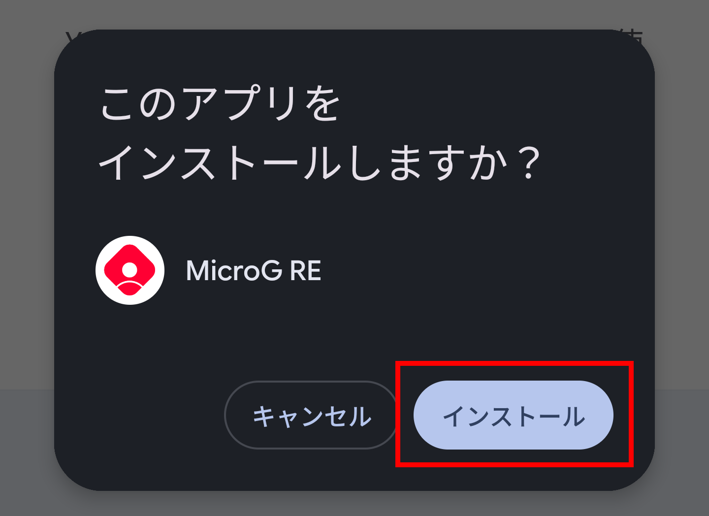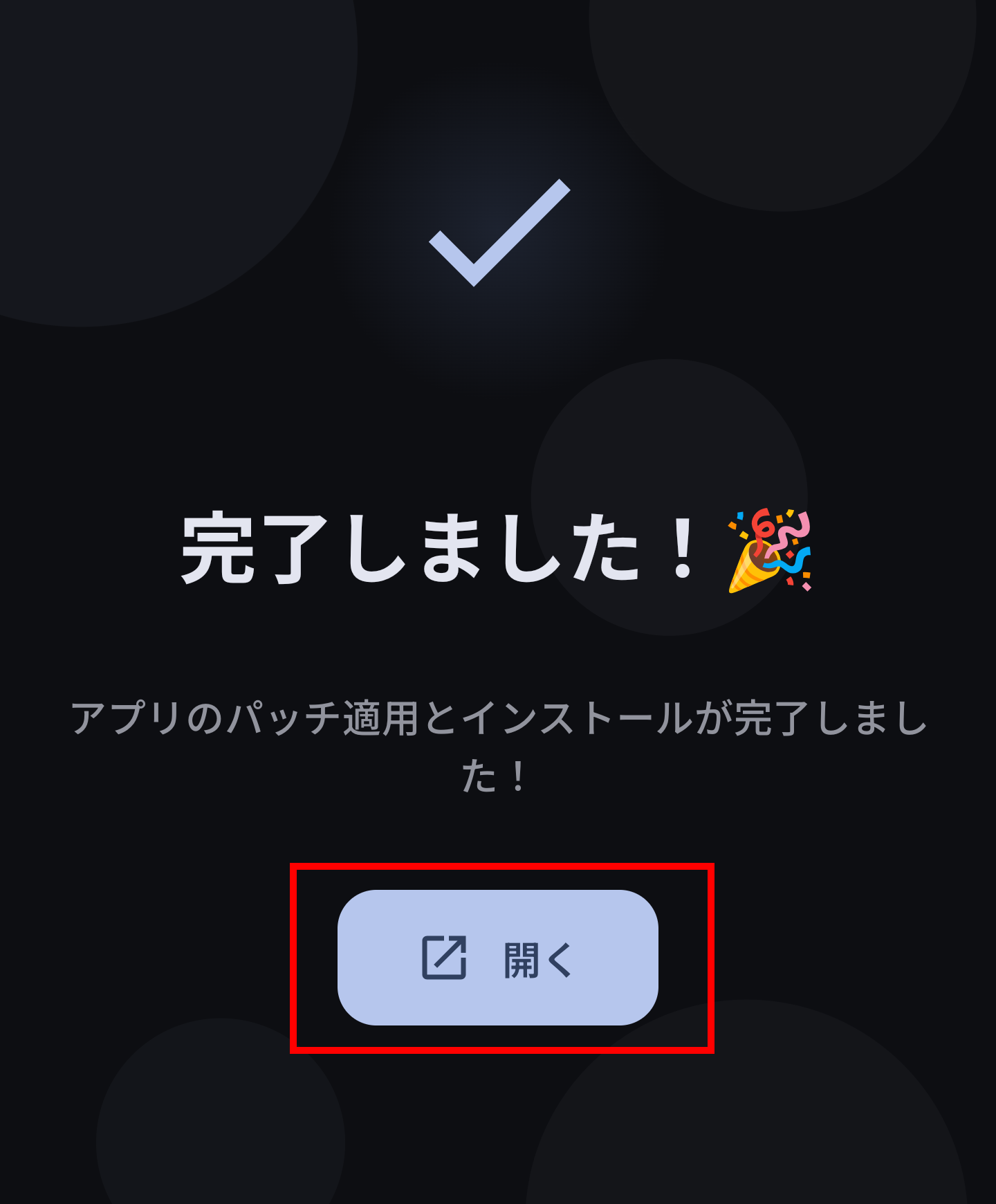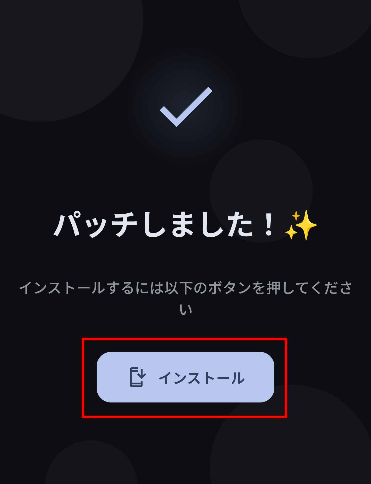 「パッチしました!」と表示されたら「インストール」をタップします。